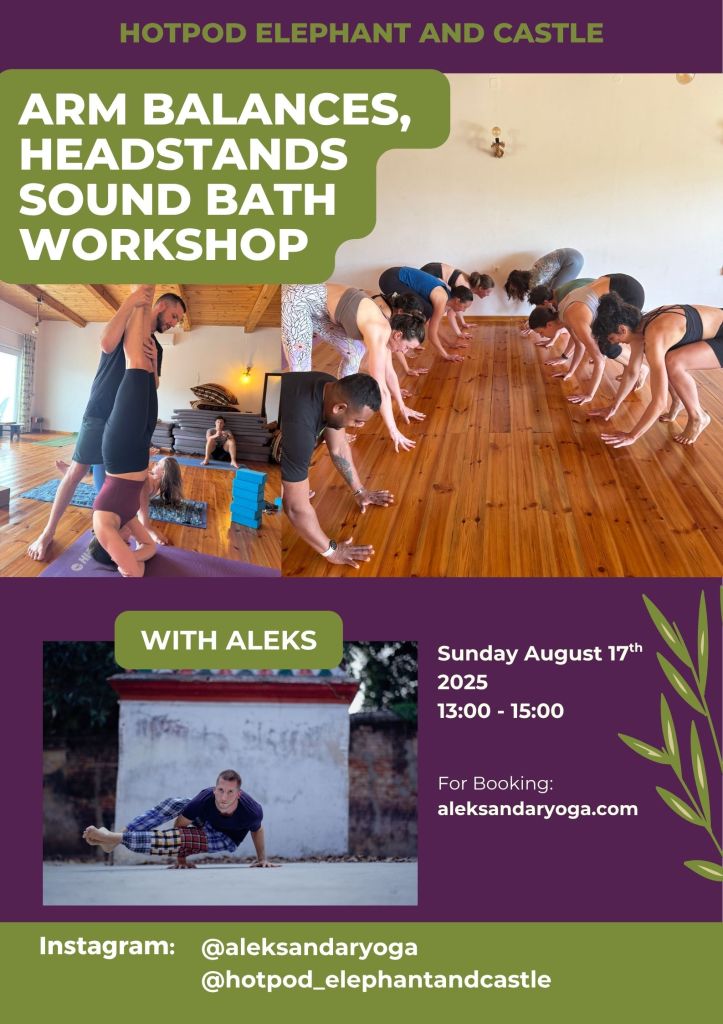 Arm Balances, Headstands and Sound Bath Workshop – August 17th, 2025 at HotPod elephant & Castle: